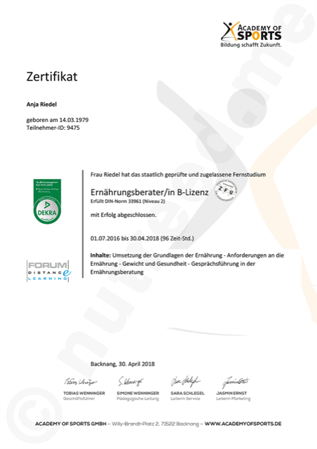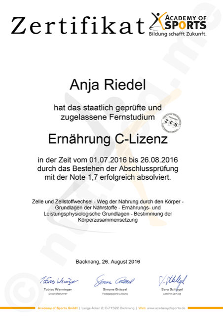 Irgendwann habe ich dann beschlossen, mich noch mal ganz fundiert mit Ernährung und Sport zu befassen und habe parallel zu meinem Full-Time-Job in der Medienbranche verschiedene Weiterbildungen absolviert und erfolgreich abgeschlossen – mehr aus Interesse und für meinen eigenen „Nutzen“.